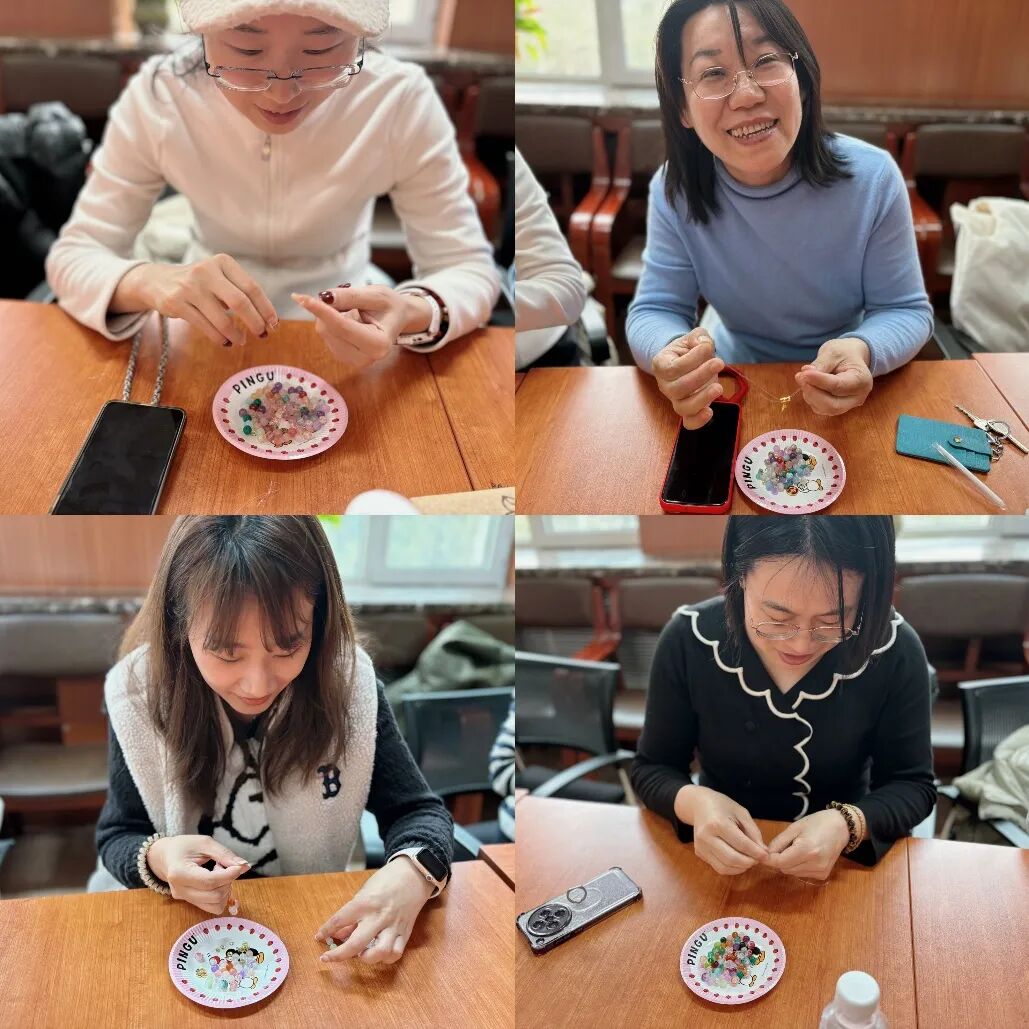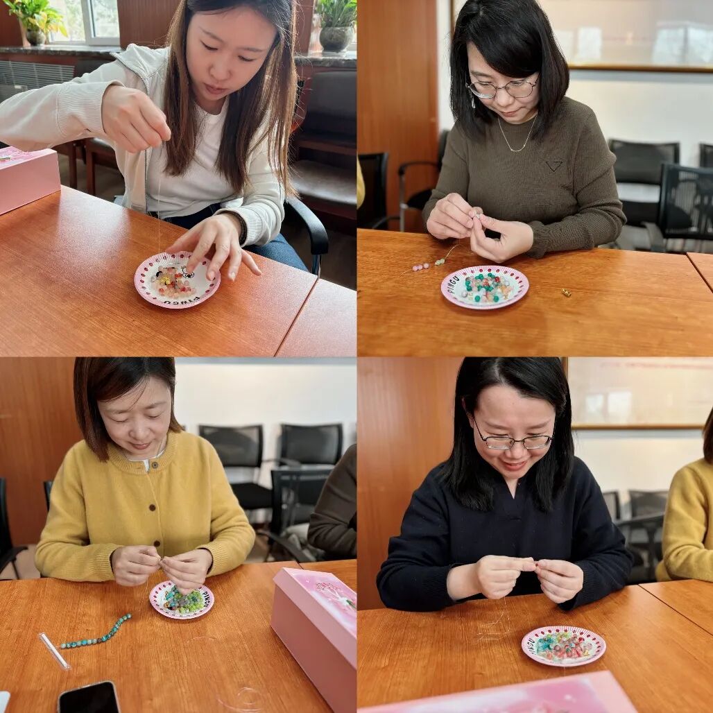 活动以创意手作为载体,为女教职工打造专属的“艺术疗愈时光”,平日忙于教学科研、行政事务的老师们化身“生活艺术家”,或专注挑选珠串配色,或巧思设计图案造型,在指尖流转中编织出独一无二的艺术品。每一颗珠子都承载着对生活的热爱与对未来的期许。活动现场欢声笑语不断,教师们彼此交流灵感,分享创作心得,在协作中拉近距离,在互动中感受关怀。