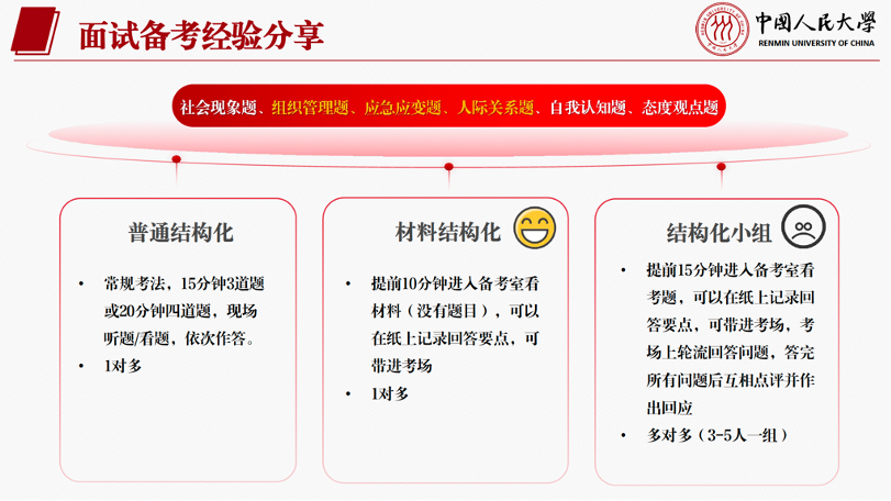 D师姐横向对比了央选、浙江选调和北京市考的笔面试命题风格及准备方法,比如浙选面试常常结合当地的发展特色考察考生的创新性思维和应变能力。备考不同地区的面试时,要根据其命题风格有针对性地收集资料和开展练习。