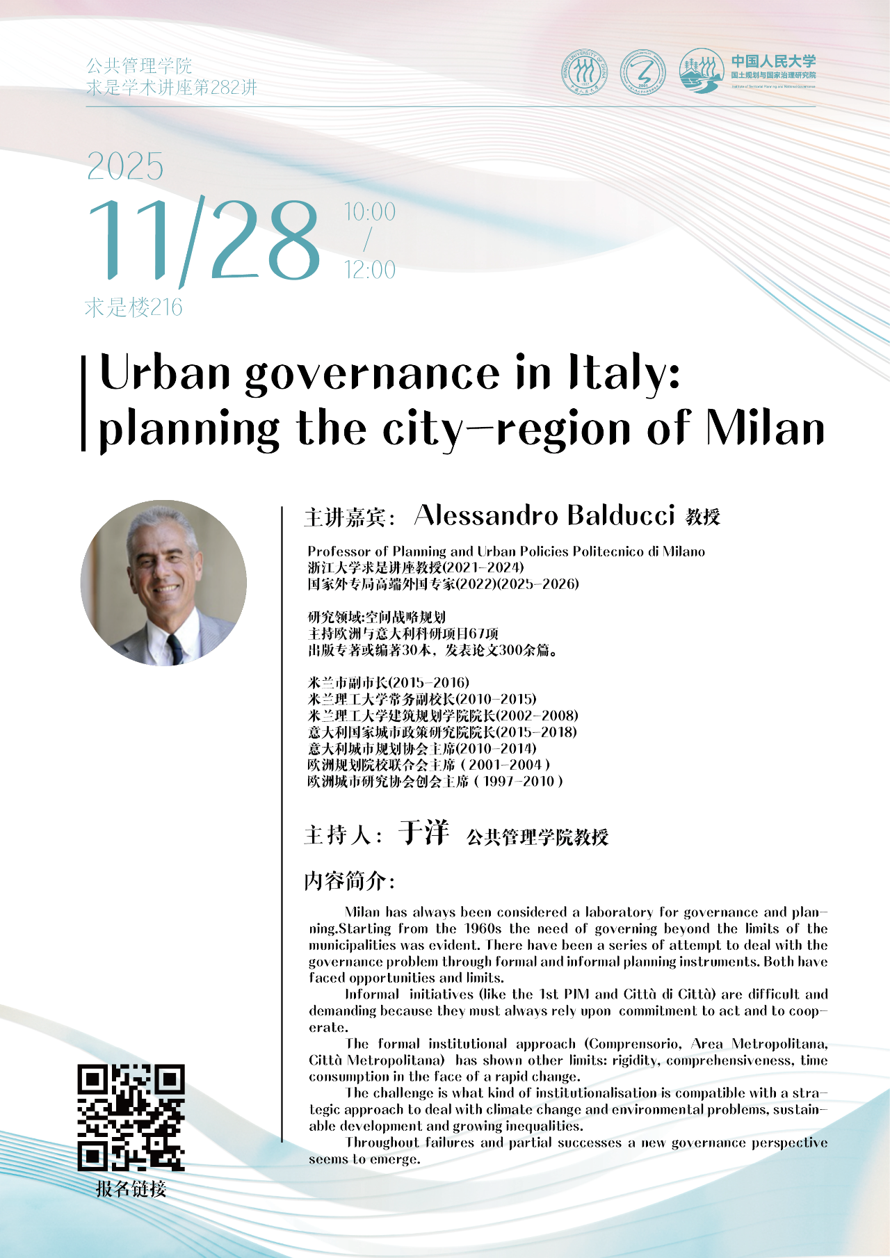 报告人:Aessandro Baducci(Professor of Planning and Urban Policies Politecnico di Milano)