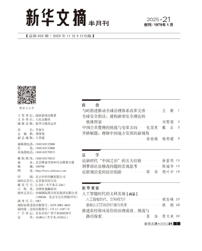 《新华文摘》2025年第21期转载(附转载链接及封面页、目录页)