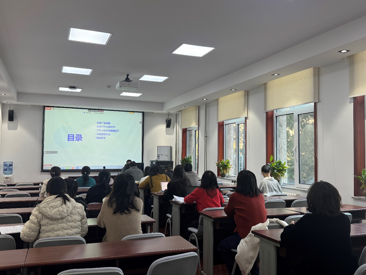白志会工程师以《办公设备的日常使用技巧及维护》为题进行讲授,内容涵盖“电脑使用与维护详解,电脑的日常维护,风扇除尘和保养,电脑的故障检测,电脑的故障维修,安装系统、驱动、软件、打印机,磁盘清理,微信清理,杀毒软件的使用方法,Office组件快捷键技巧,AI的使用方法”等方面,既有很强的实用性、实操性,又对于理解、掌握和运用数智赋能办公信息化具有很好的导引作用。