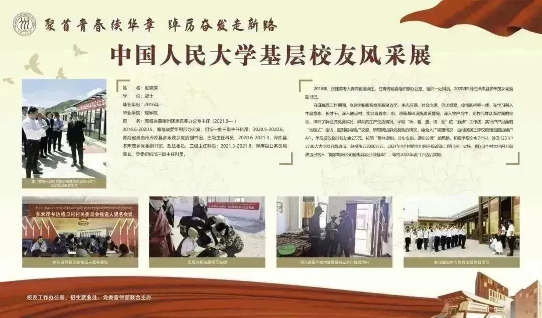 宣传弘扬基层青年校友扎根基层、服务基层的艰苦奋斗精神,鼓励更多优秀学子在祖国的大地上建功立业、绽放青春。