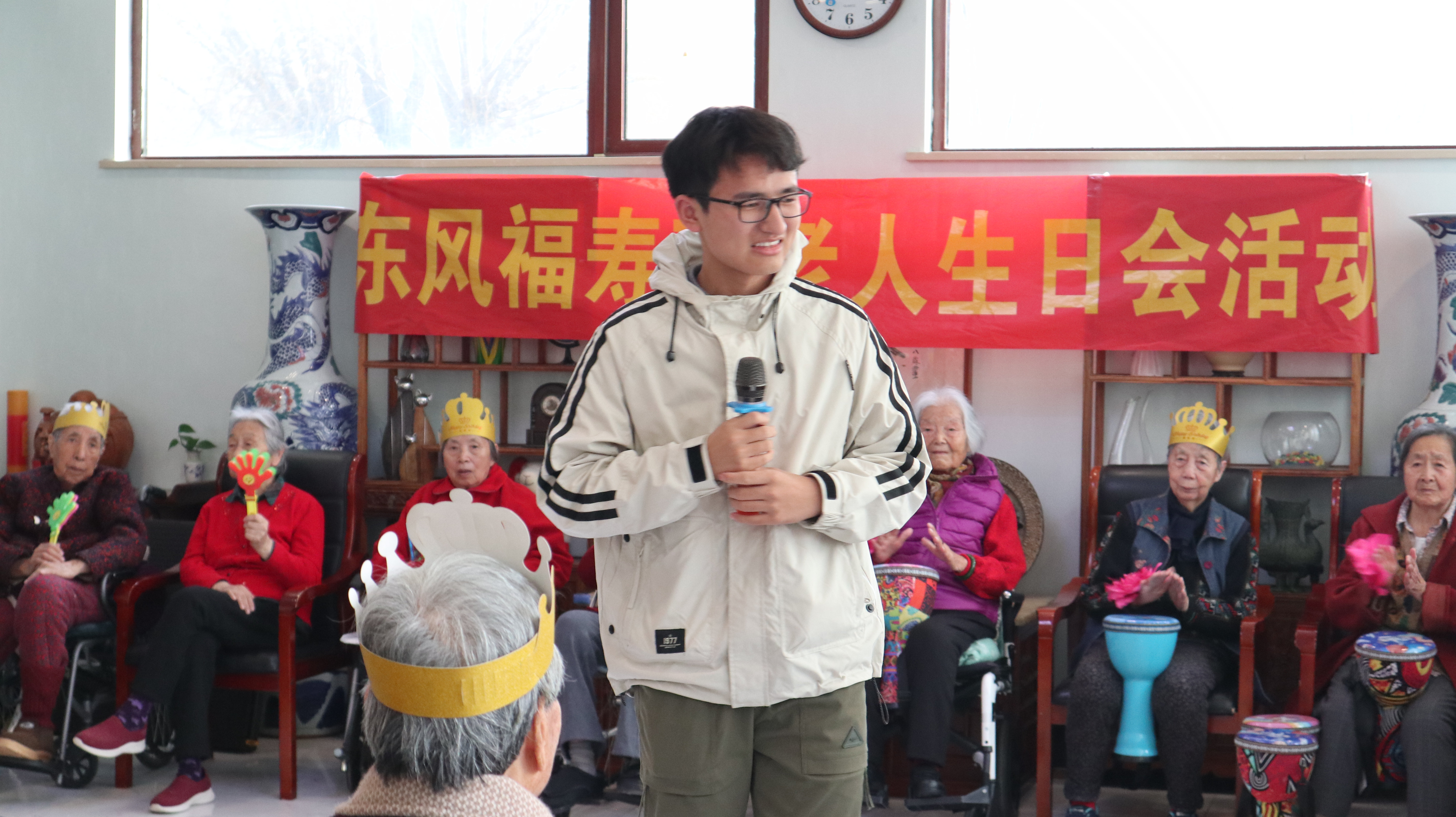 随后,同学们分为两组,分别前往福寿苑养老照料中心和恒爱养老照料中心开展敬老志愿服务活动,通过与老人结对做手工、互动游戏、才艺表演、生日庆祝会等环节,给老人带去冬日温暖。