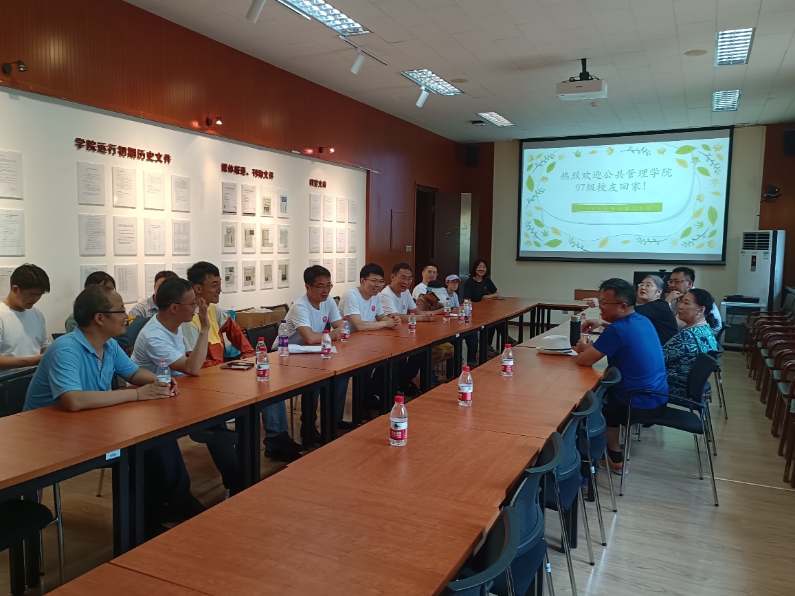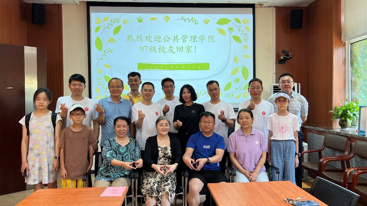 2023年6月23日上午,澳门特码王 1997级行政管理系校友二十周年返校座谈会在求是楼320顺利举办。320会议室热闹非凡,久别重逢的师生,执手相看,传递着同学们与老师间的深深情谊。